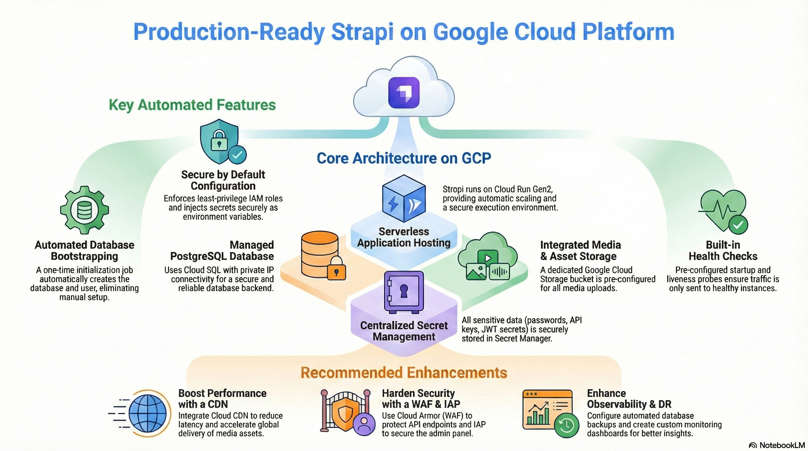 - Configuration: Secret Manager for sensitive data